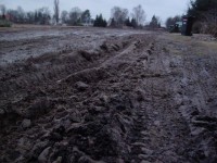 Dieses durch die Anwohner herbeigeführte "Grading" hat über 20 Jahre gehalten. Die Schiebungen der Sandpisten der umgebenden Nachbarstraßen dagegen müssen regelmäßig wiederholt werden. Die Verantwortlichen dafür scheinen nicht zu begreifen, dass Wasser gerne zum tiefsten Punkt läuft. Wenn es dort verdichteten Boden vorfindet, werden große Pfützen gebildet - ganz überraschend.